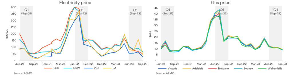 - $147/MWh lower than Sep-22 quarter which experienced periods of high prices due to baseload outages and high international coal and gas prices.