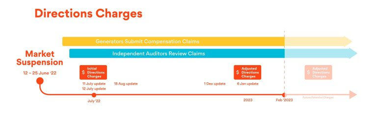 Directions charges are calculated after claims for compensation are submitted by market participants. In most instances, the claims are submitted shortly after the event. Claims for the June 2022 event were reviewed by an independent auditor and have been on-going after an initial charge was announced in July 2022. As a result, AEMO announced an amended charge on 6 January 2023.