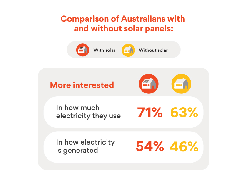 More than two-thirds of Australians with solar say that having solar has made them more engaged with energy overall, 74% say it has made them more interested in managing their home’s energy, and 59% say it has made them more interested in getting other energy related technology for their home.