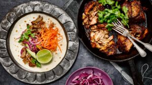 - Juice 2 limes and mash with avocado. Sprinkle with chopped chilli. Cut the remaining lime into wedges and serve with the pork cutlets, corn salad and guacamole.