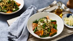 - Cook pasta in a large saucepan of salted boiling water following packet instructions. Drain and toss with sausage sauce. Serve sprinkled with feta and chives.